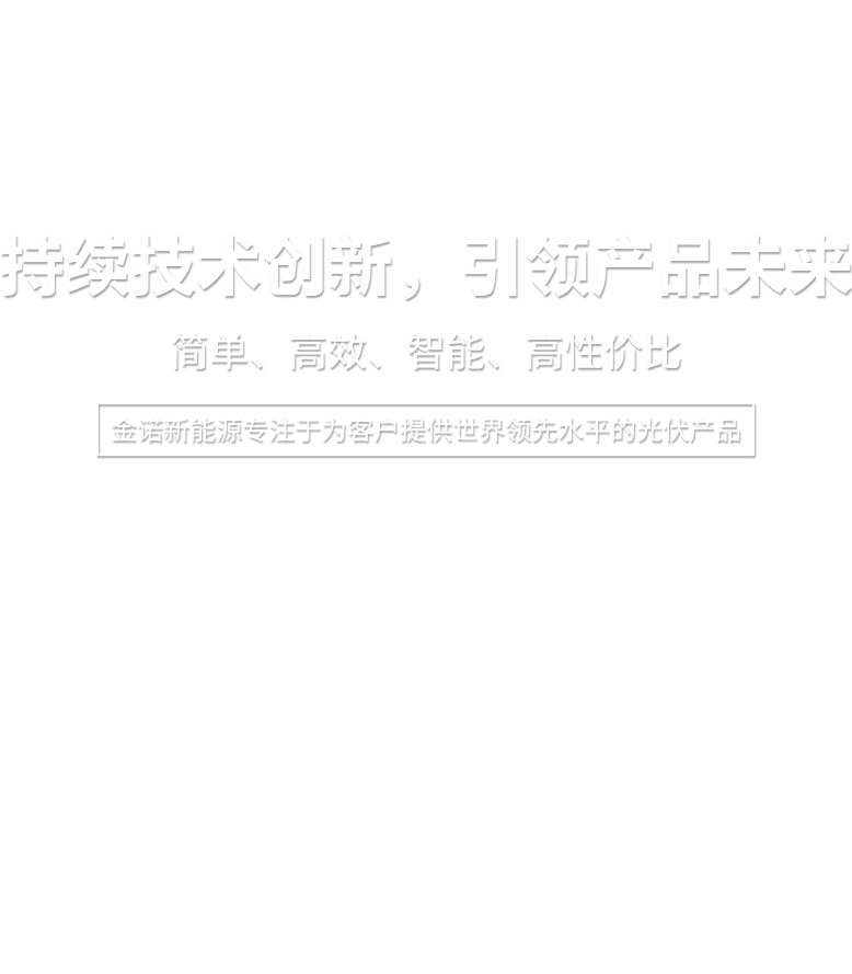 金諾新能源專注于為客戶提供世界領(lǐng)先水平的光伏產(chǎn)品,大力實施科技創(chuàng)新。我們秉持“品質(zhì)為先,服務(wù)全球”的理念,為客戶創(chuàng)造更高價值,并與您分享世界綠色能源在陽光下的成長喜悅!